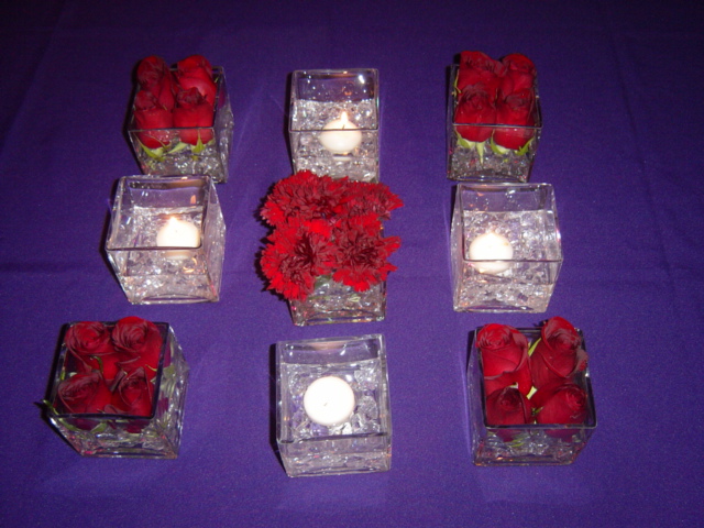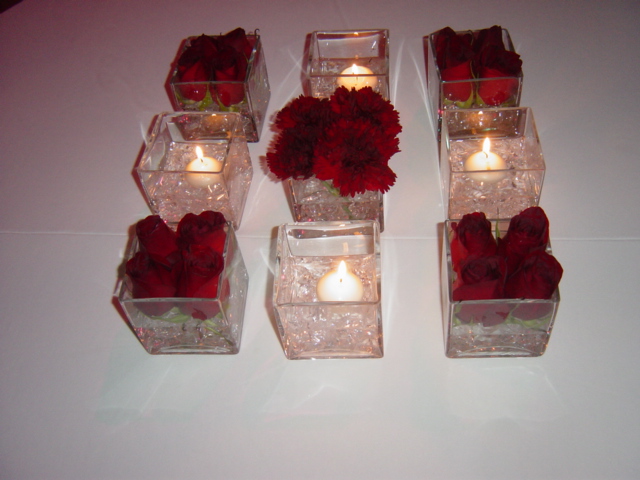 From about 42 different types of vases to choose from, you can custome make your ribbon and get assortment to better fir your color theme. Because iDesign has all of there items in stock, you just pick up and drop off these fabulous centerpieces and vases. From feathers on the vase, to gems, what ever your theme is, we have it. If you’d like to go a step further and personalize your centerpiece with your own ribbon, iDesign Florist will be more then happy to put it on the vase for you.