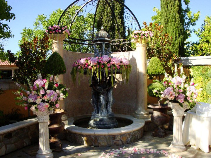 altar. Column in glass, mirror columns, plastic original wedding arbors and columns and much more. Just visit our showroom. With over 11 wedding arches for ceremony you will find exactly what you love. And if we don’t have the arch or item your looking for, we will order or custom fabricate one for you with no extra charge. It’s important to keep in mind that every venue and churches have different rules when it comes to using or lighting candles and fresh versus silk flowers at the altar. Well if you are in a dilemma, no worry, we are here to help. iDesign Events has a large variety of silk amazing hyndrengia, roses, peonies and lots of high end flowers in stock, no not the ones you see at your dollar store, more like 10.99-30.99 per stem. These awesome silk high-end flowers are especially latex glazed to give you that ultimate freshness at any event. We use all sorts of wedding design and combination of flowers that compose the large three foot altar arrangements for your column. Here are some samples. Happy Planning.