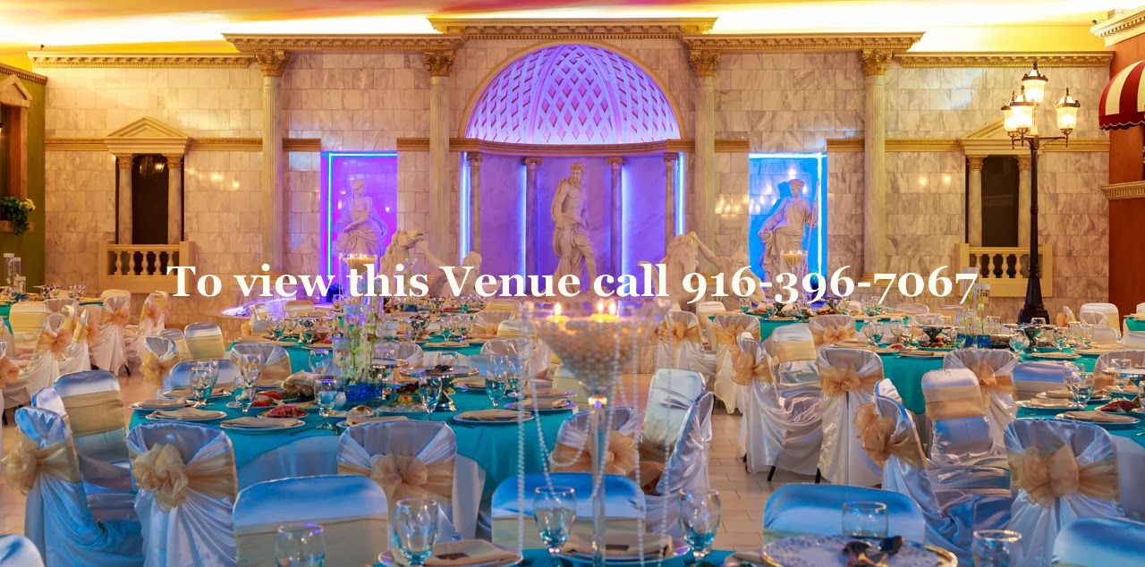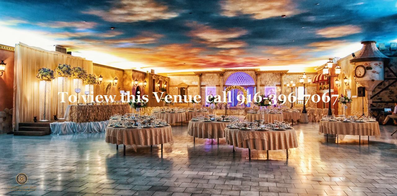 With seating up to 500 this beautiful Venetian style banquet hall resembles the very same Venetian Resort in the Las Vegas . Located in the heart of Sacramento easy access from Highway which lots of free parking and the best of all no service fees or cake cutting fee’s or additional service charge fees .