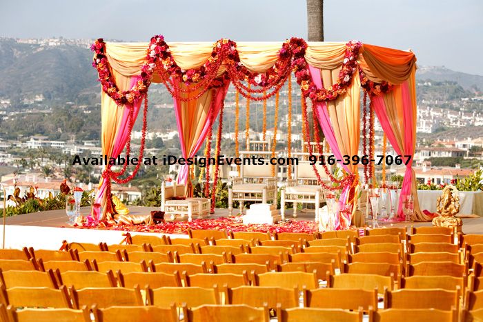 Maharani Weddings | South Asian Bride | Hindu & Indian Wedding Mandap Ideas Sacramento| House Decor | Pipe Draping Colorful Backdrop Ideas
